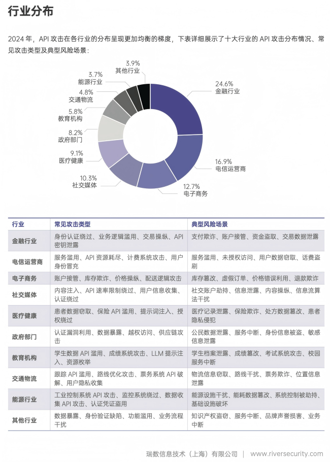 面对攻击规模化、API攻击在各行业的分布呈现更加均衡的梯度,企业需加强对第三方API的安全管控,